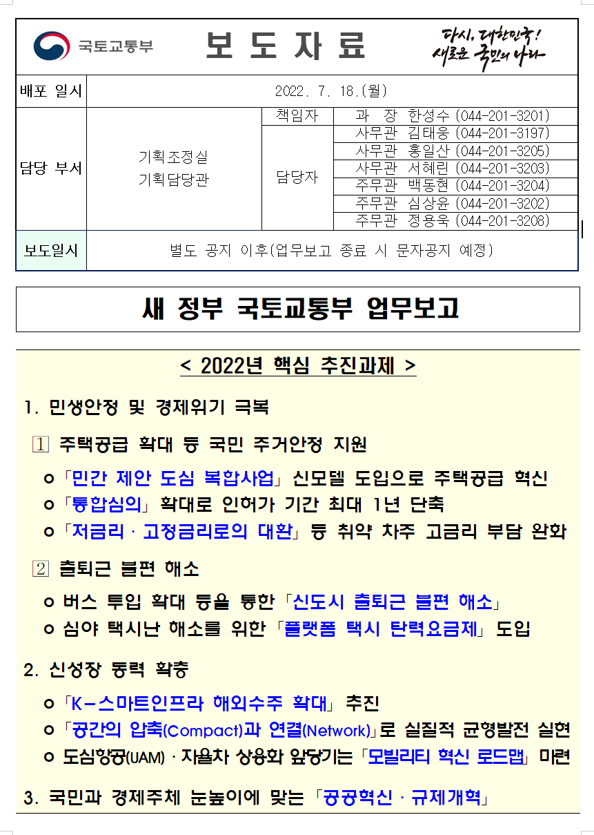 [ 국토교통부 2022년 핵심 추진과제 ]