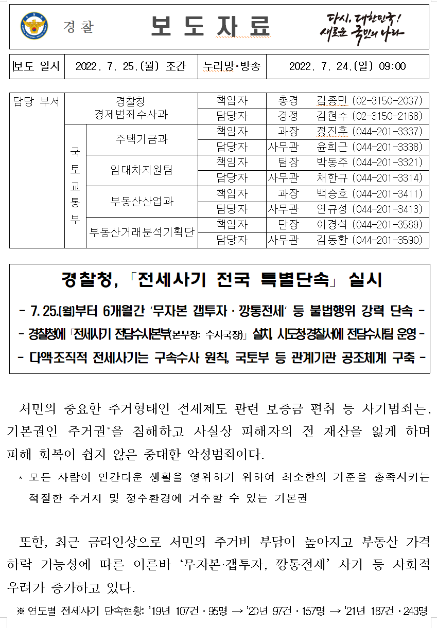 - 다액‧조직적 전세사기는 구속수사 원칙,