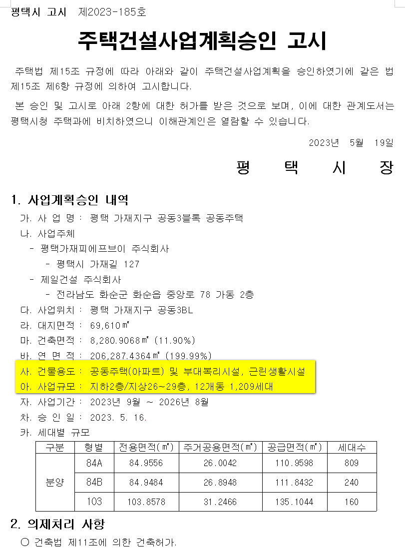 | 평택 가재지구 1블록 공동주택건설사업계획승인 고시 (0) | 2023.05.21 |