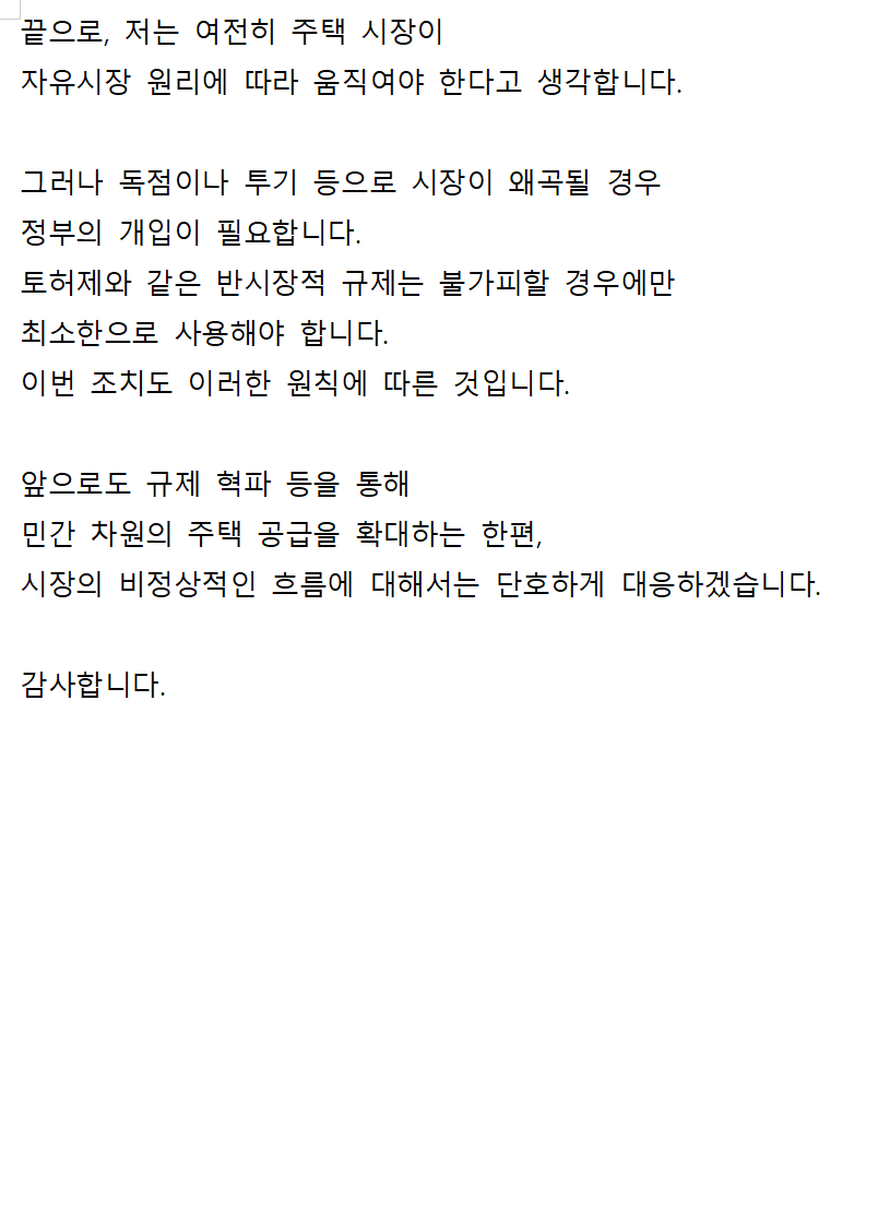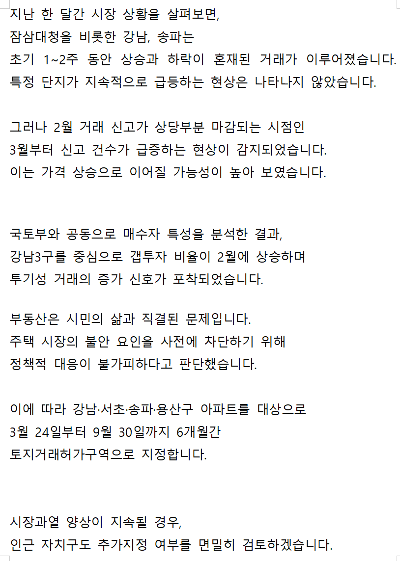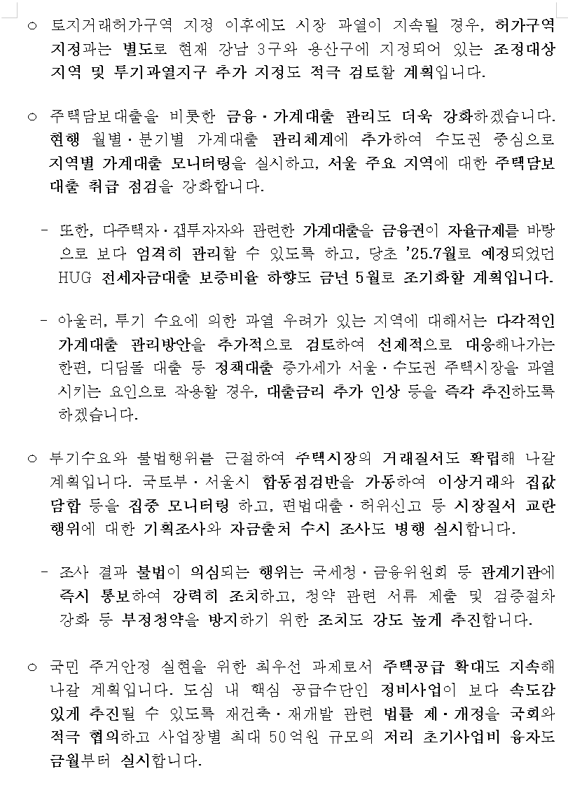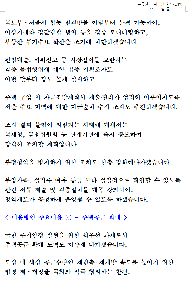 | 2025년 10월 15일(수), 부동산 관계장관회의 개최 "주택시장 안정화 대책" 발표 - 부총리, 국토부장관, 국무조정실장, 금융위원장, 국세청장, 모두발언 - (0) | 2025.10.15 |