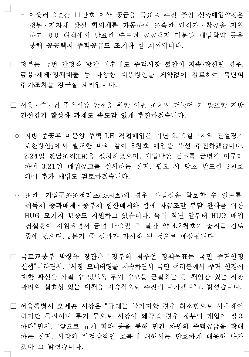 □ 서울ㆍ수도권 주택시장 안정을 위한