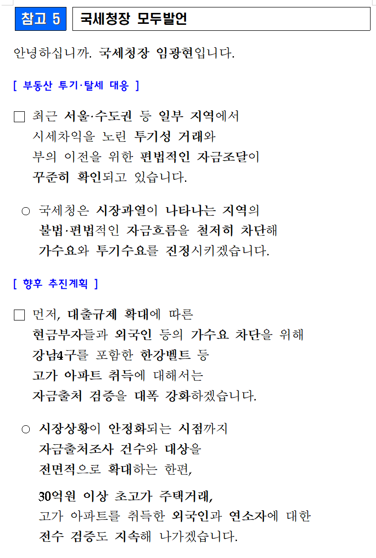 [참고 5] 국세청장 임광현 모두 발언