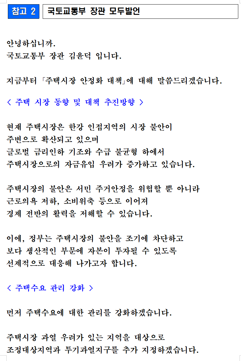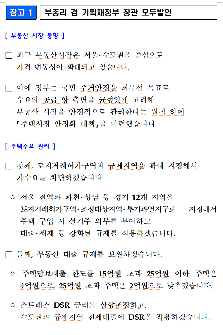 "주택시장 안정화 대책" 발표