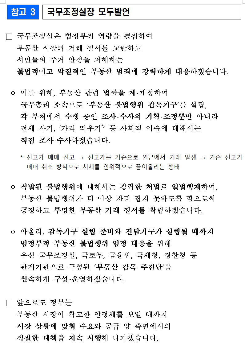 투기수요 유입을 근절하여
